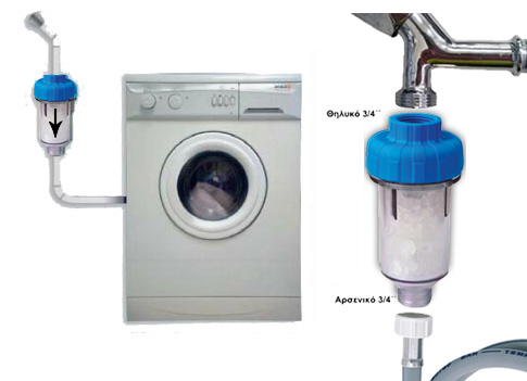Φίλτρο πλυντηρίου 3/4'', διασπαστής αλάτων O Pure, με κρυστάλλους πολυφοσφατίου για την προστασία του πλυντηρίου από επικαθήσεις. Είναι ιδανικό για πλυντήρια και θερμοσίφωνα. Διασπά τα άλατα, προστατεύει από επικαθήσεις ανθρακικού ασβεστίου στην αντίσταση, και παρατείνει την διάρκεια ζωής του πλυντηρίου. Το φίλτρο προστατεύει τα πλυντήριά σας από την εναπόθεση αλάτων και μειώνει την ποσότητα απορρυπαντικού που απαιτείται. Πίεση λειτουργίας: 7 bar max Θερμοκρασία λειτουργίας: 0°C + 50°C Παροχή: 1000lt/h Είσοδος/Έξοδος 3/4" Α.Θ. Προσαρμόζετε εύκολα και γρήγορα, στο λάστιχο του πλυντηρίου.