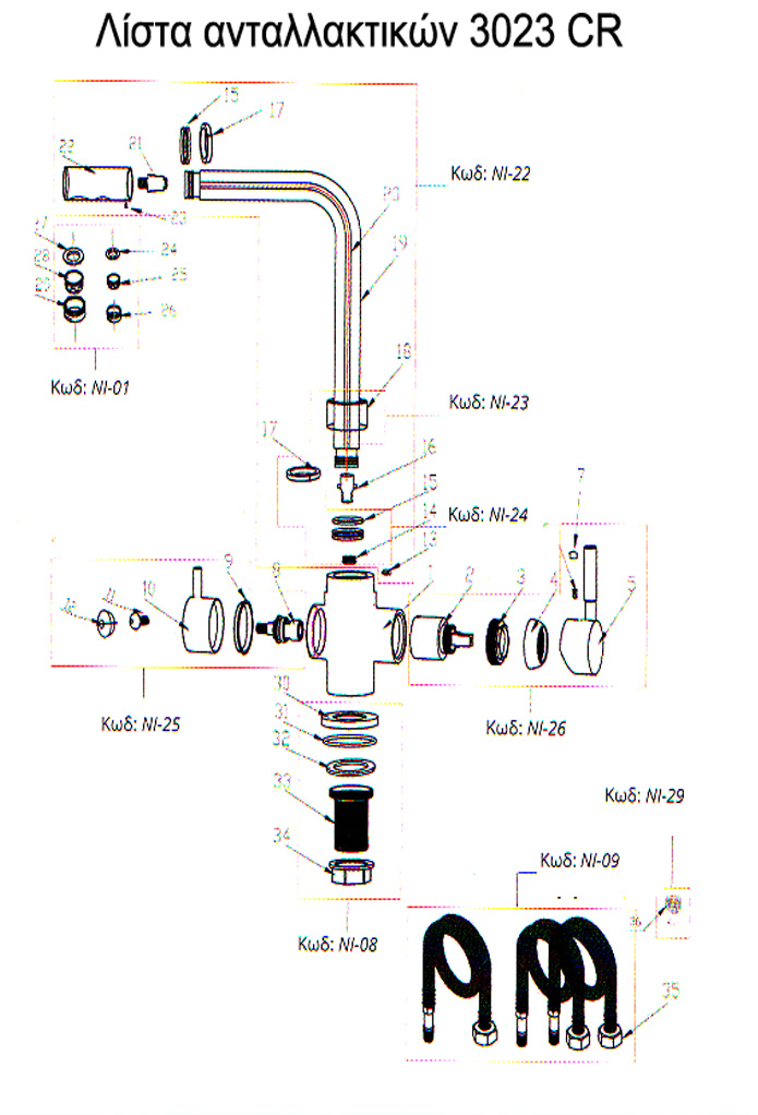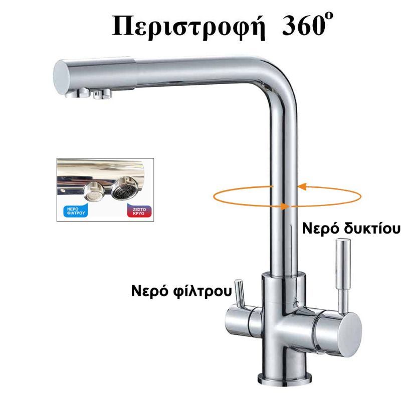 Τρίοδη μπαταρία κουζίνας, (3 σε 1) για σύνδεση όλων των τύπων φίλτρα κάτω πάγκου.